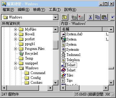 "Win95" 這個資料夾 內,按兩下滑鼠開啟 "Telnet" |