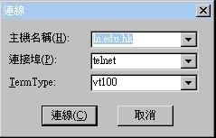 的對話匣,要連線至網絡供應商的 UNIX系統,請鍵入其主機的名稱 (E.G. "www.hkcampus.net"), 然後按連線 |